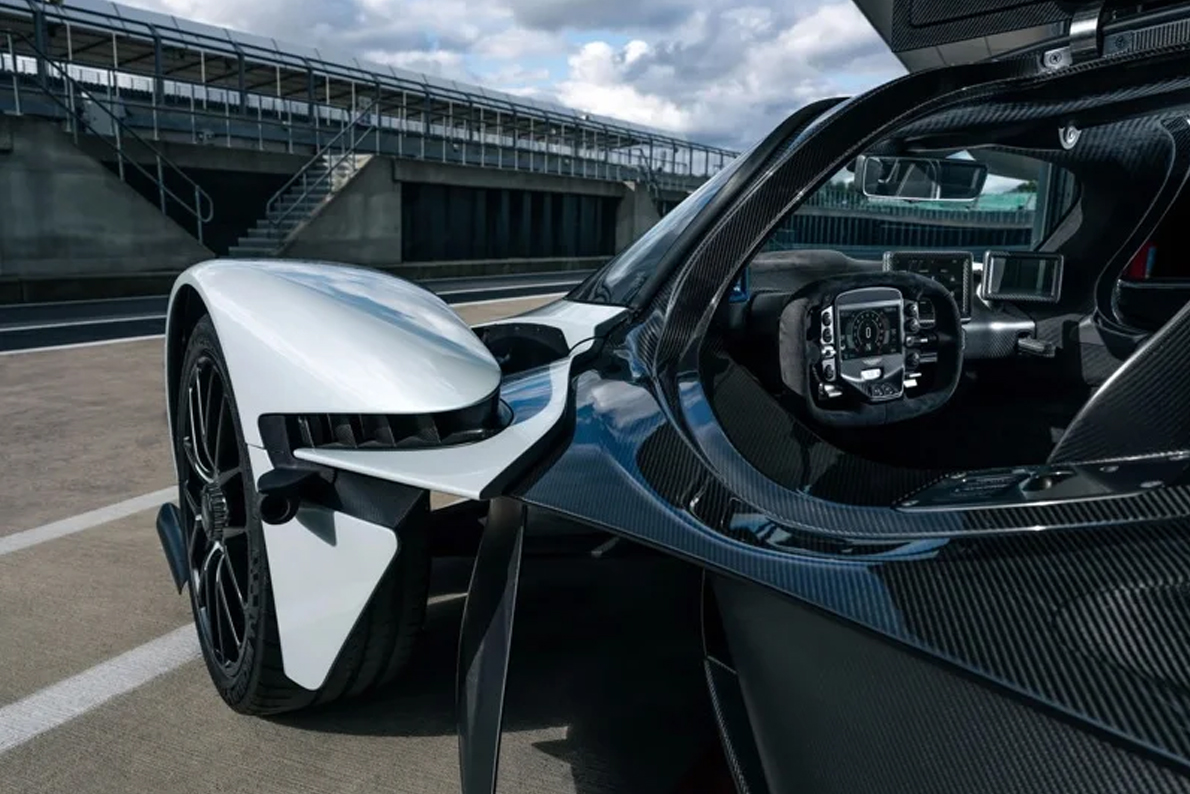 据悉,里卡多的这辆女武神底盘号为089,特别选用了价值3万英镑(约合人民币124万元)的"Dichroic Dawn"专属车漆,灵感源自他在其他阿斯顿·马丁车款上见过的蓝色。外观还搭配裸露碳纤维悬挂罩与镁合金雾黑轮圈,细节处以车漆色点缀,展现强烈个性化风格。车厢内则以黑色Alcantara面料铺陈,碳纤维桶椅搭配银色缝线,方向盘同样具备高规格赛车感设计。