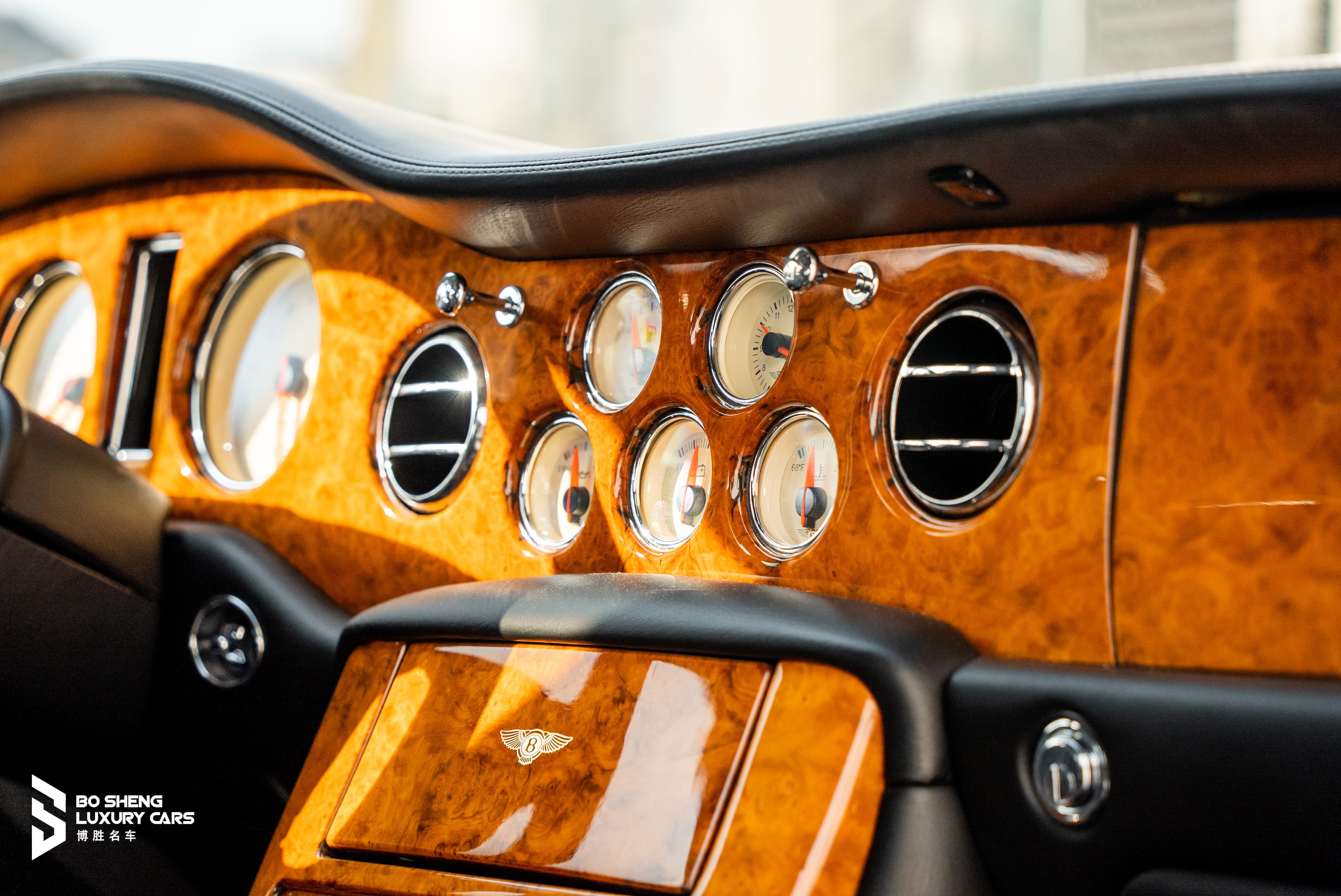 "建议您重点感受原厂真皮座椅的触感,这种小牛皮供应商早已被宝马收购。全车80%以上为2001年下线时的原漆,四轮悬挂胶套由宾利经典车部门更换,机械状态相当于普通车辆5年车龄。整车外观及零部件通过精心整呗呵护,拿回去即可上手使用,不需额外花时间精力进行再次整呗。